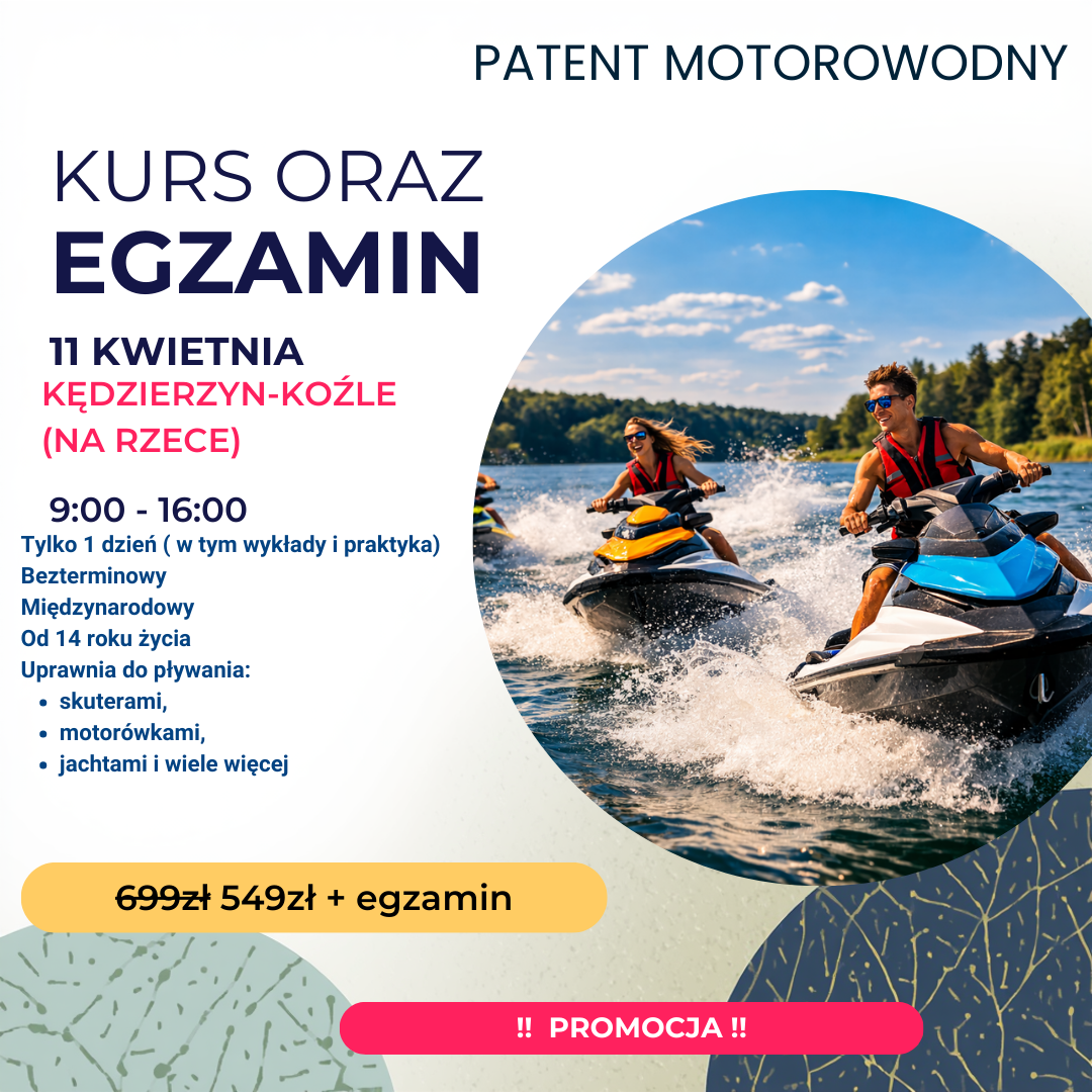 Certyfikat ukończenia kursu (jeśli wydawany przez organizatora) – może być pomocny przy wynajmie sprzętu motorowodnego lub jako dowód odbycia szkolenia.