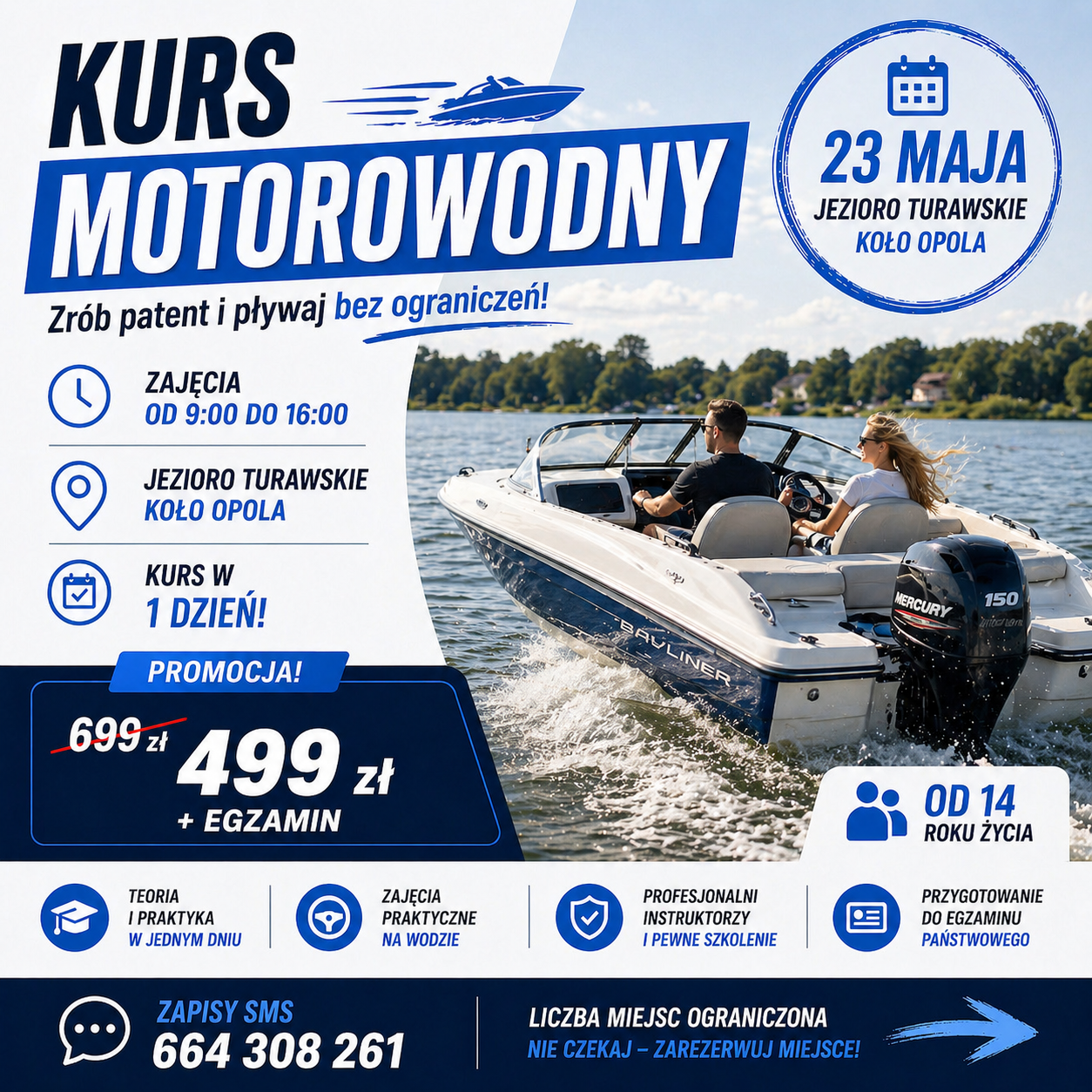 -Patent motorowodny można uzyskać od 14. roku życia, a górnej granicy wieku nie ma.